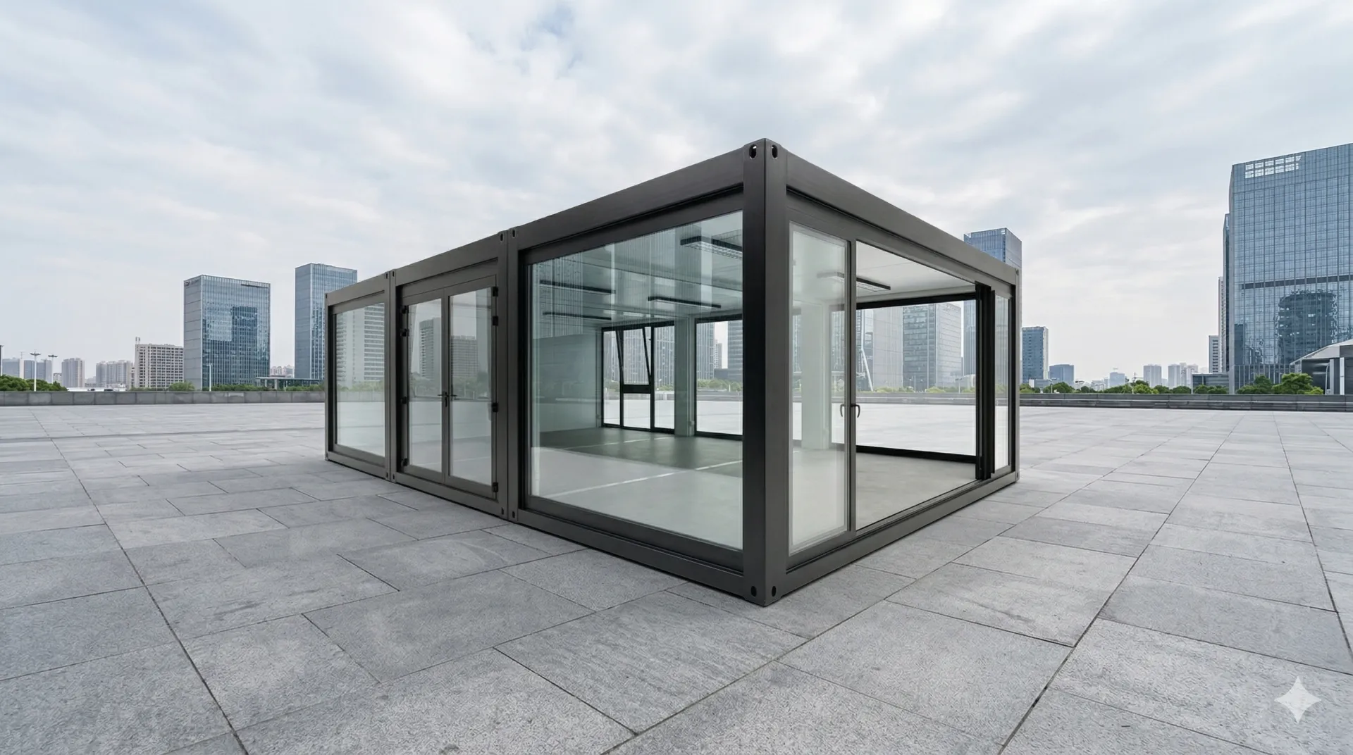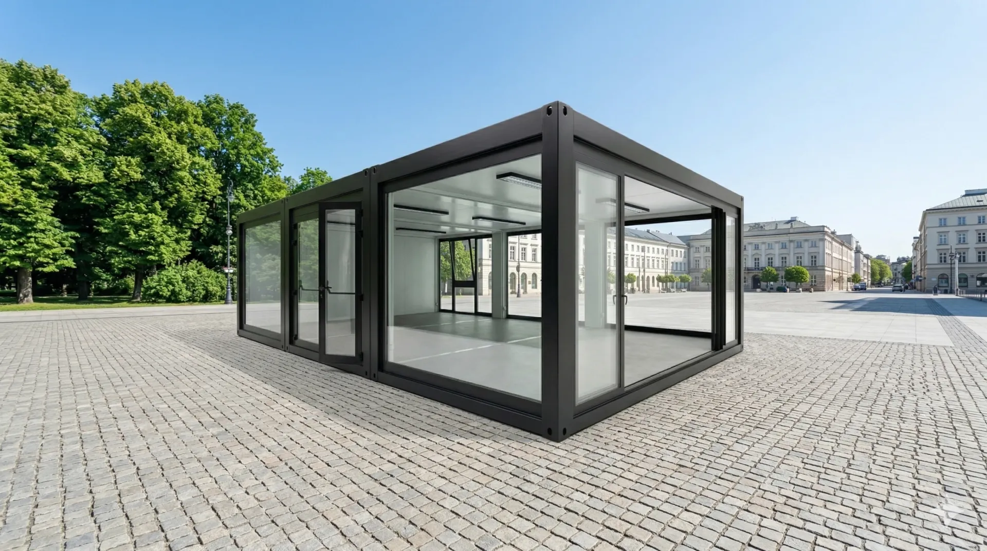 Setzen Sie Ihre Marke brillant in Szene. Der Eventcontainer „Entwurf 68“ ist die perfekte Symbiose aus industrieller Stabilität und moderner Architektur. Mit seiner großzügigen Panoramaverglasung und dem modularen Design schafft dieser mobile Showroom eine lichtdurchflutete Atmosphäre, die Besucher anzieht und Ihre Produkte optimal präsentiert.