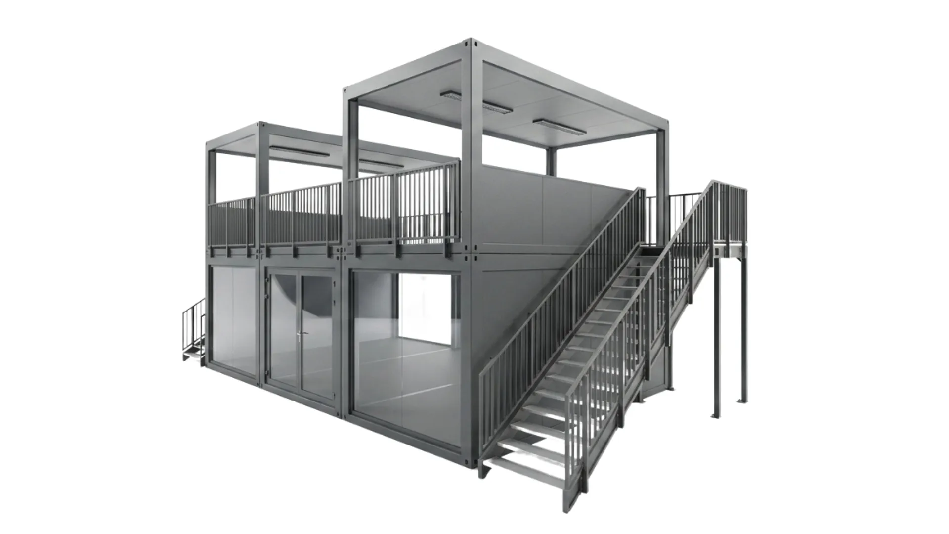 Eventcontainer Entwurf 27 – Doppelstöckige Premium-Lösung mit Dachterrasse