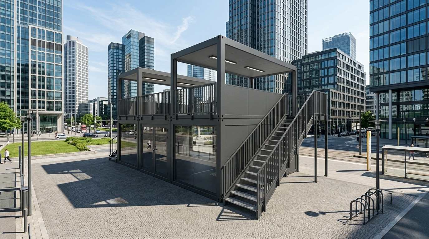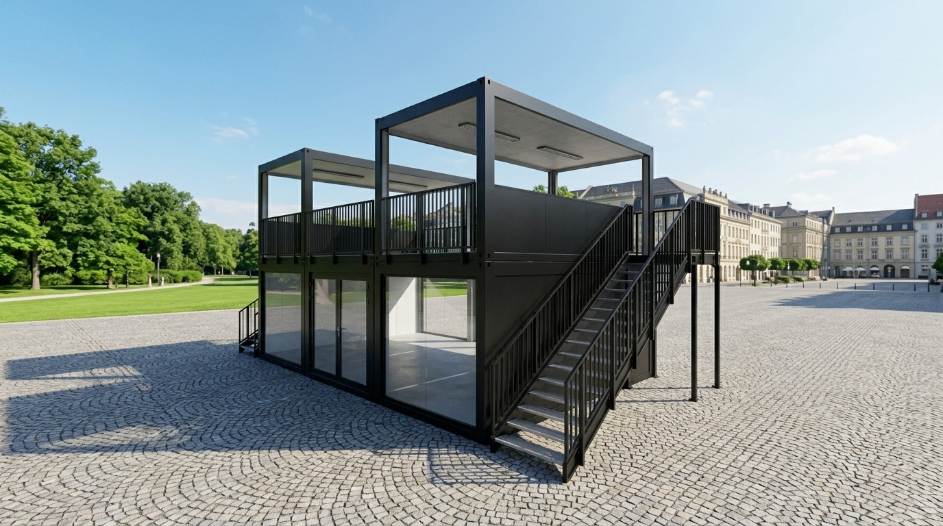 Der Eventcontainer Entwurf 27 setzt neue Maßstäbe für immersive Markenerlebnisse und vertikale Raumkonzepte. Diese imposante Doppelstock-Anlage kombiniert zwei vollverglaste 20-Fuß-Module im Erdgeschoss mit zwei großzügigen, überdachten Dachterrassen im Obergeschoss. Die transparente Architektur der unteren Ebene schafft eine einladende Empfangs- und Präsentationsfläche, während die oberen Decks als exklusive VIP-Lounges oder Aussichtsplattformen dienen. Dank der stabilen Stahltreppenaufgänge mit Sicherheitsgeländern und der robusten Rahmenkonstruktion bietet der Entwurf 27 maximale Sicherheit bei höchster optischer Attraktivität. Dieses Modul ist die ideale Wahl für Sportevents, Festivals oder großflächige Messeauftritte, bei denen Sie aus der Masse herausstechen und Ihren Gästen einen exklusiven Mehrwert bieten möchten.