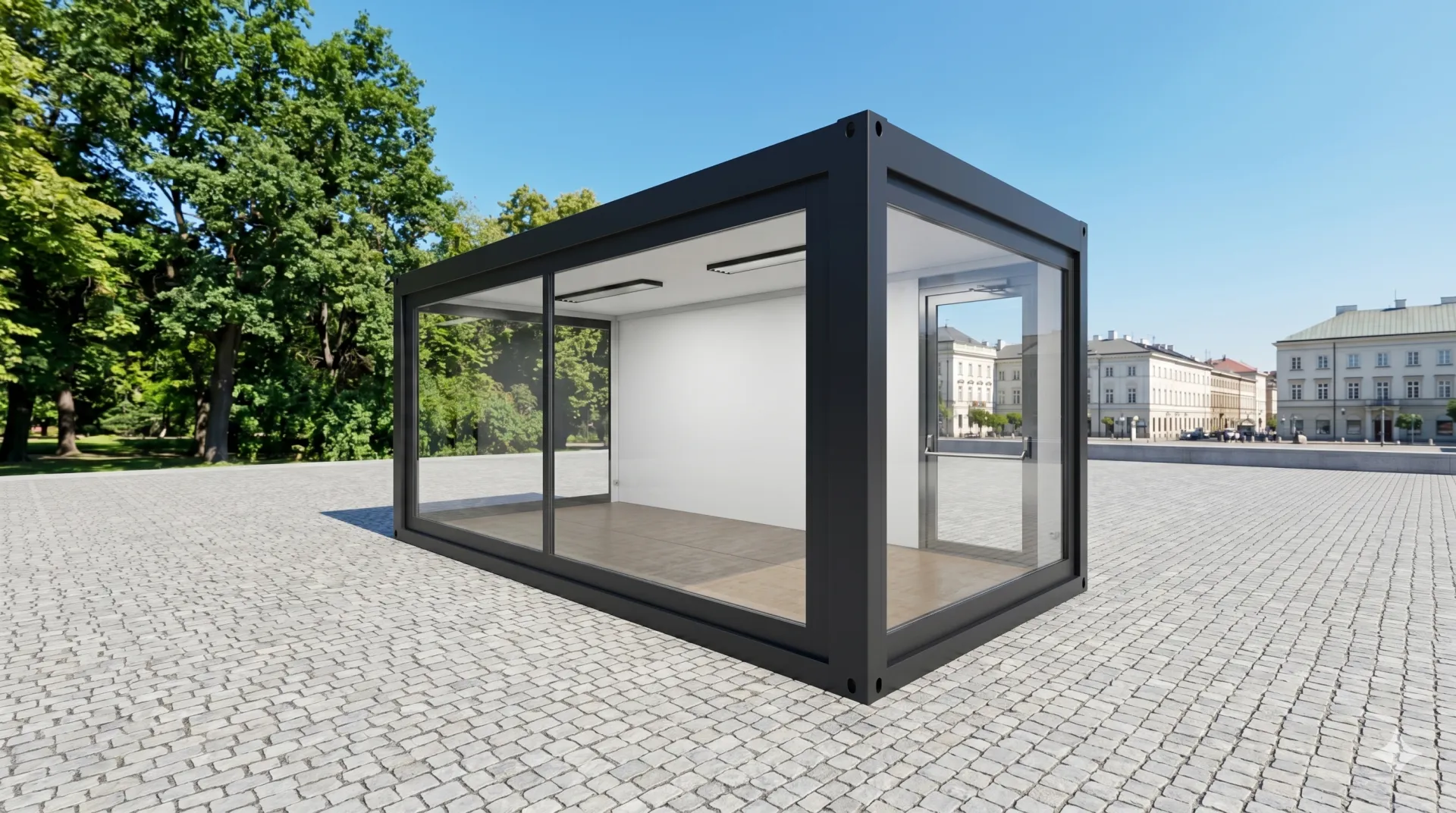 Der Eventcontainer Entwurf 9 ist die Antwort auf die Anforderungen moderner Live-Kommunikation: Er vereint die hochwertige Optik eines festen Showrooms mit der kompromisslosen Mobilität eines Modulbaus. Dank seiner kompakten Bauweise lässt sich dieser Eventcontainer mühelos an jeden Standort transportieren und besticht vor Ort durch einen extrem schnellen Auf- und Abbau. Das minimalistische Design dient als ideale Leinwand für Ihre Markenbotschaft – das Modul ist bis ins Detail individualisierbar, von der Farbwahl des Rahmens bis hin zu maßgeschneiderten Branding-Flächen. So schaffen Sie innerhalb kürzester Zeit einen repräsentativen Point-of-Sale oder Infopoint, der Professionalität ausstrahlt und flexibel mit Ihren Anforderungen mitwächst.