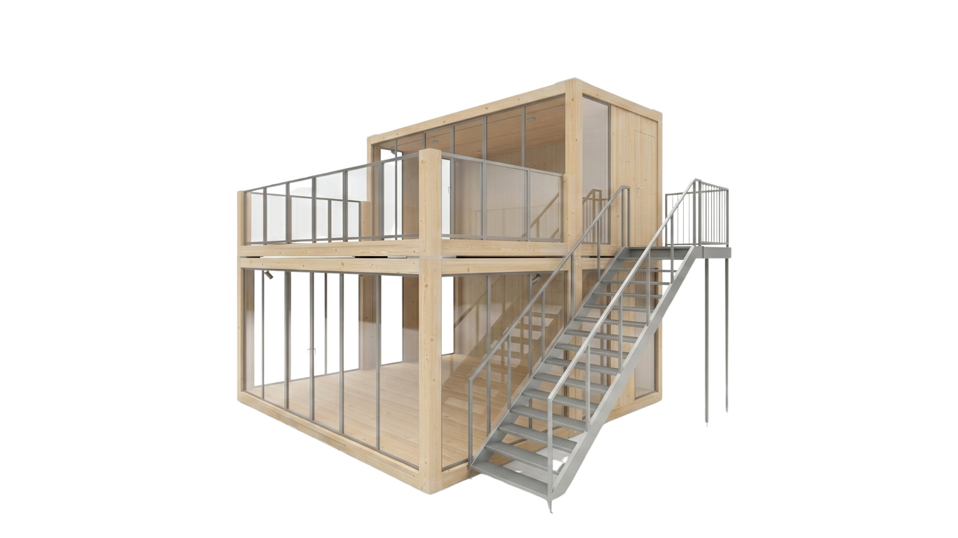 Flächeneffizienz: Die zweistöckige Konfiguration generiert zusätzliche Nutzfläche auf minimaler Standfläche, was besonders bei begrenzten Platzverhältnissen vorteilhaft ist.